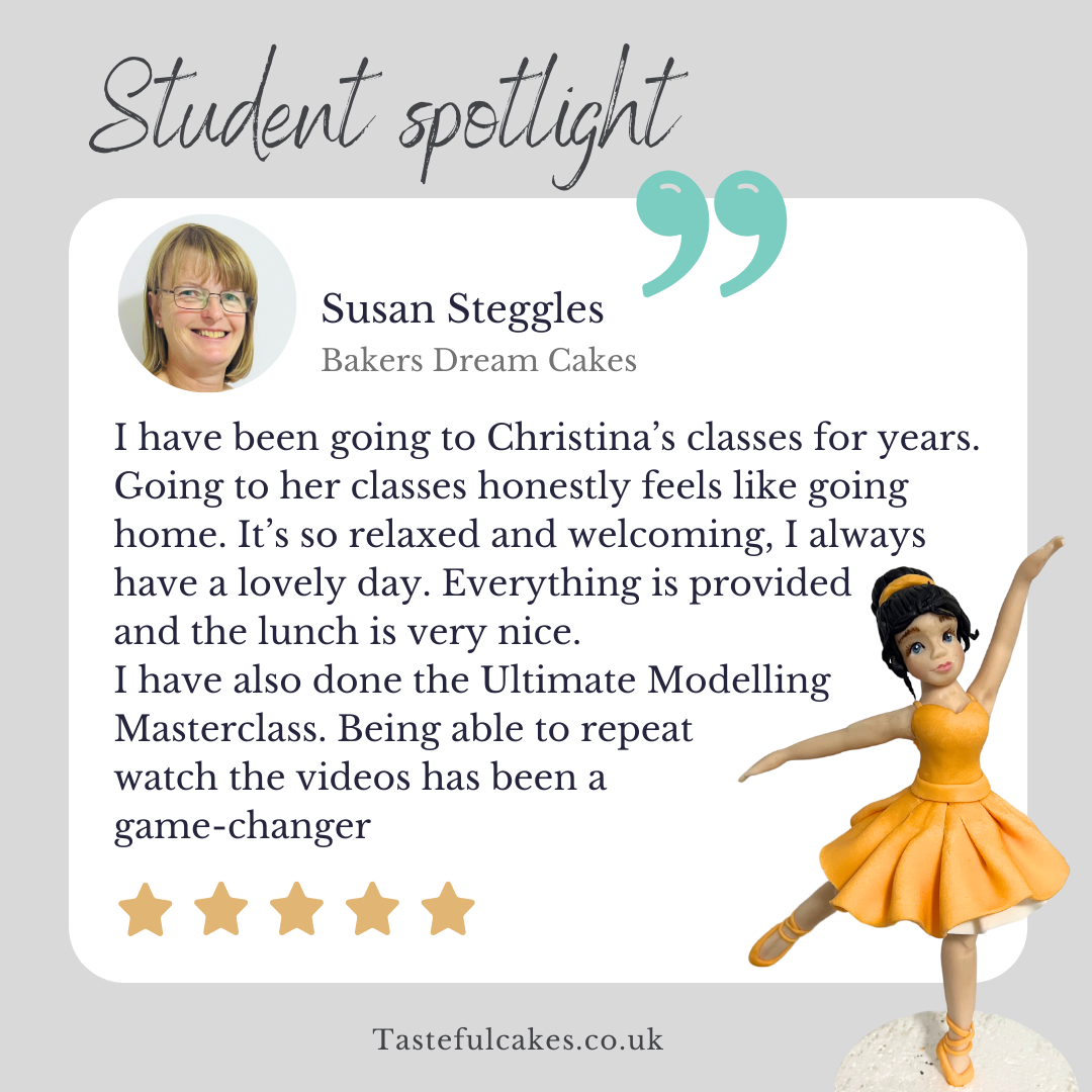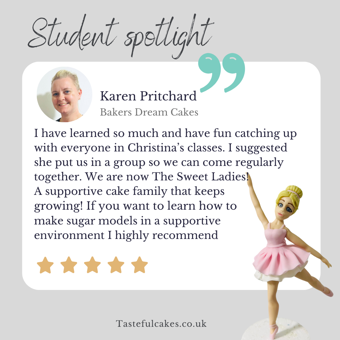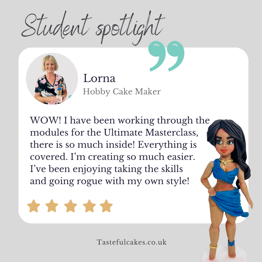 I never want anyone to feel alone on their sugar modeling journey. I am super passionate about giving support and creating the feeling of being in a classroom. Work through the modules in order and create your very first model. When you have completed your figure, you can then share a picture with me on WhatsApp at +44 78772073257 to receive one-time individual feedback. I'll look all around the model and send you detailed audio feedback. I'll be able to spot anything you have missed and show you ways to correct any errors. This way, when you make your next model, you will have actionable steps to improve every time.