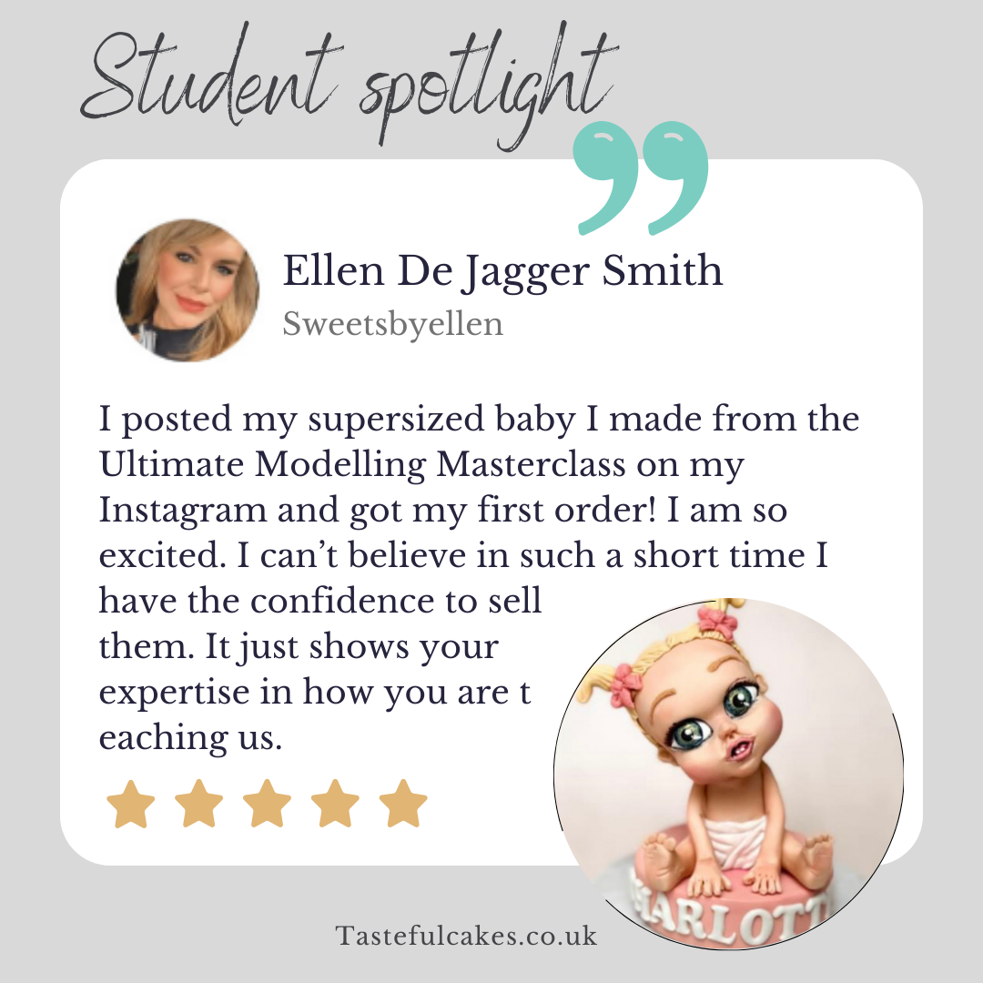 In the last few years, I've had the pleasure of teaching hundreds of students how to create caricatures at an advanced standard. I've learnt quick, easy ways to create sugar models over and over again. From that, I have built a profitable cake topper business that perfectly fits in with my family life.